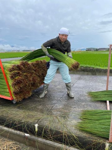 2023年度イ草の刈取り作業。国産畳表の95%を作る熊本県八代市にある契約農場にイ草の刈取りをお手伝いしてきました。