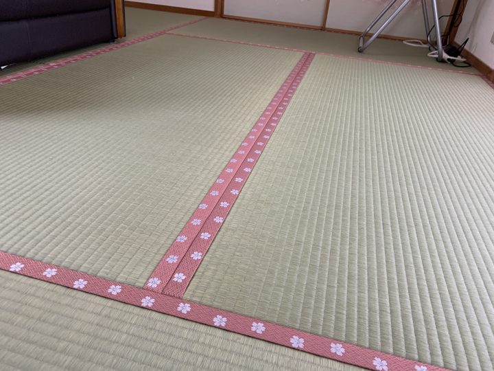 西東京市北原町で、当社オリジナル畳表の『お手入れしやすい畳表』を使い、ヘリは、高田織物の大宮縁HANA香織シリーズ№6を付けて、畳替えをした事例をご紹介します。