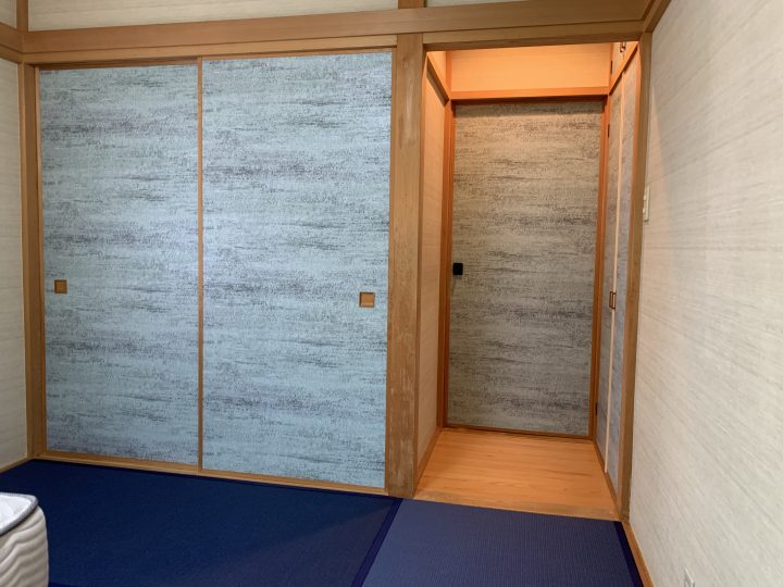 西東京市ひばりが丘でルノンの襖紙「ルノン凛2集 寂328」を使っての襖の張替え事例をご紹介します。