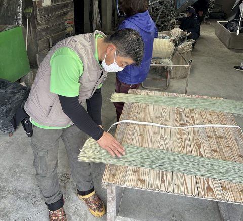 国産畳表の産地、熊本県八代市に畳表の製織体験をしてきました。イ草の選別編