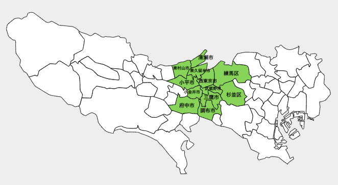 清瀬市、東村山市、小金井市、三鷹市、調布市、府中市、