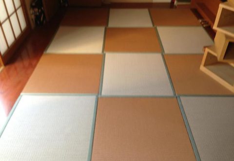 縁無し半畳市松敷 畳表 ダイケン工業健やか表 目積グリーン 床 カイハツ三型 2ミリのクッション材入り クッション材を入れる事によってワラ床の柔らかさがあります FacebookXBlueskyCopy