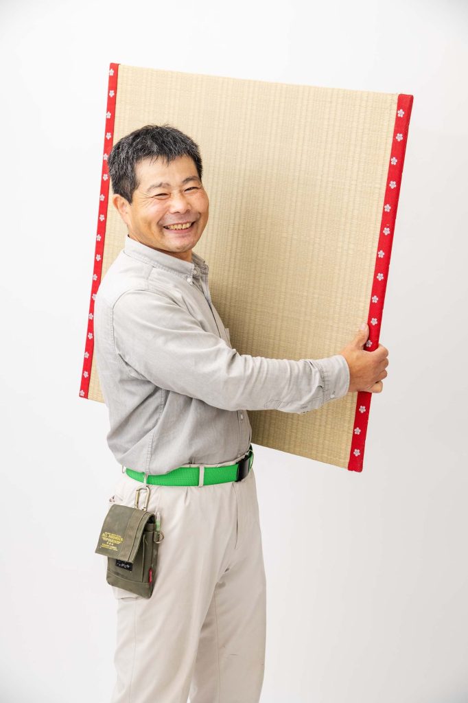 畳職業訓練学校で学び、一級畳技能士の資格を取得いたしました。「お客様に安心・安全な本物を届けたい」という一心で、畳表は熊本県八代市の契約農家さんから直接仕入れた国産品のみを使用しています。