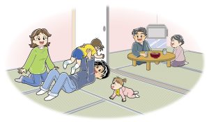 子育てで心配な、ベットからの落下、鳴き声、ドタバタ足音、などトラブルにも対応できるのが畳