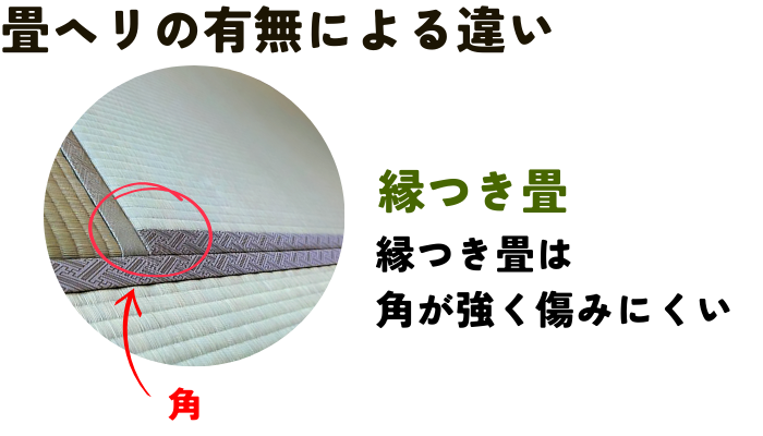 そうですね。畳に縁(ヘリ)が付いたタイプとヘリがないタイプの2種類に分かれます。