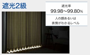 * 遮光2級:99.80%以上(顔の表情がわかる程度の明るさ)