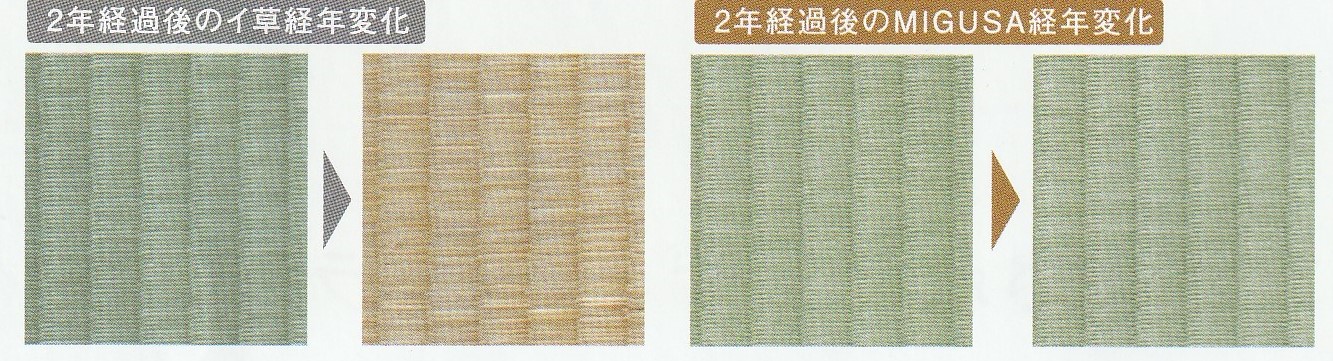 普通の畳表より畳の目が細かいタイプ(目積表)なので普通の目の畳表(引き目表)に比べて少し丈夫になります。(同じランクで比べた場合)