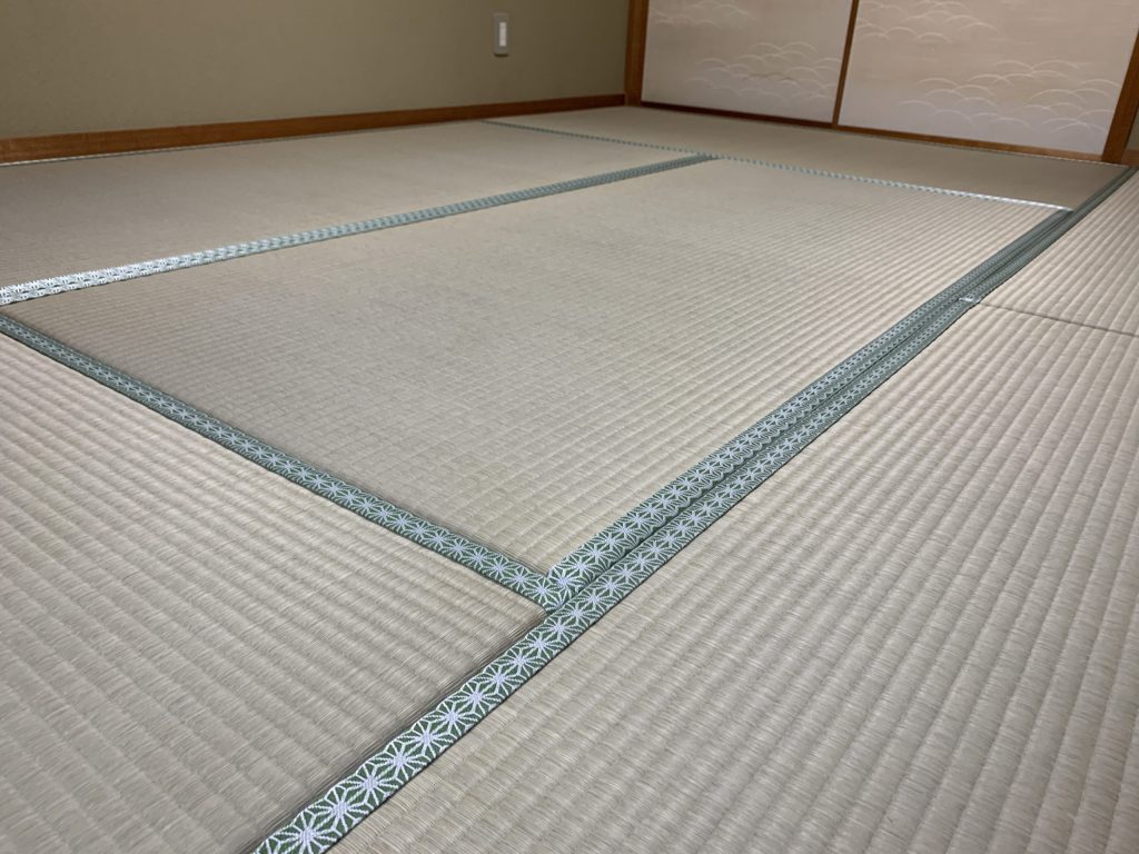 西東京市新町で3階のお部屋を、水をはじいてカビにくくお手入れが簡単な畳表を使い、畳縁総合メーカーモーリ株式会社の白馬シリーズ№7番で畳替えを施工した事例をご紹介します。