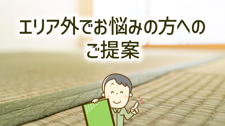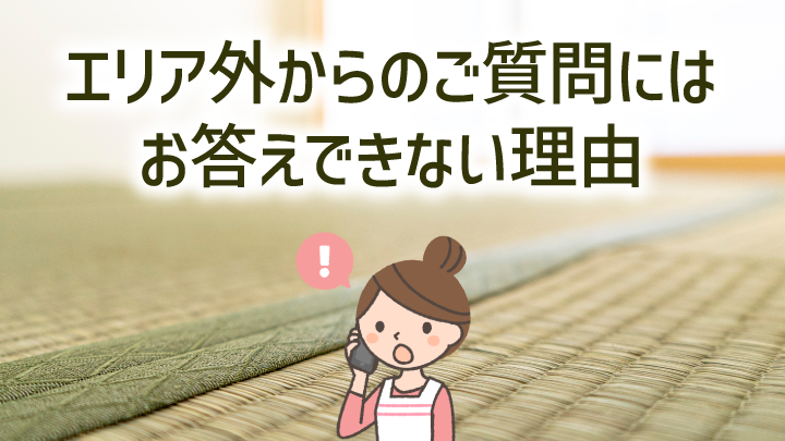 エリア外のお客様の場合、お客さまご自身でオンラインで解決方法を探されるか、畳をお求めになったところにご相談に行かれると良いですよということですね。