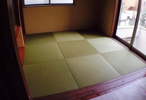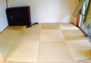 表替え 天然い草の縁無し畳から化学表の縁無し畳へ表替え ダイケン工業の健やか表 灰桜色とカクテルフィット の二種類の表を使いました