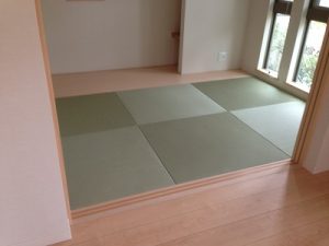 ペットがいる御宅なので、 い草では傷みが早いという事で、樹脂系の畳表で施工させて頂きました。 セキスイ美草市松表グリーン 全体に市松柄ですが、しつこく無くスッキリしており、 お客様も喜んでいました。