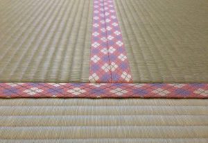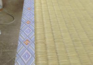 本日のお仕事は、二色の畳表を使って施工しました。 ダイケン工業 健やか畳おもて 清流カラー亜麻色 清流カラー灰桜色 縁 青雲 夢123