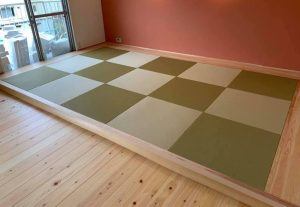 コレでも畳です😃 タタミは古くさい⁈ いえいえ、色々な素材を使うとオシャレでモダンな和室に大変身‼️